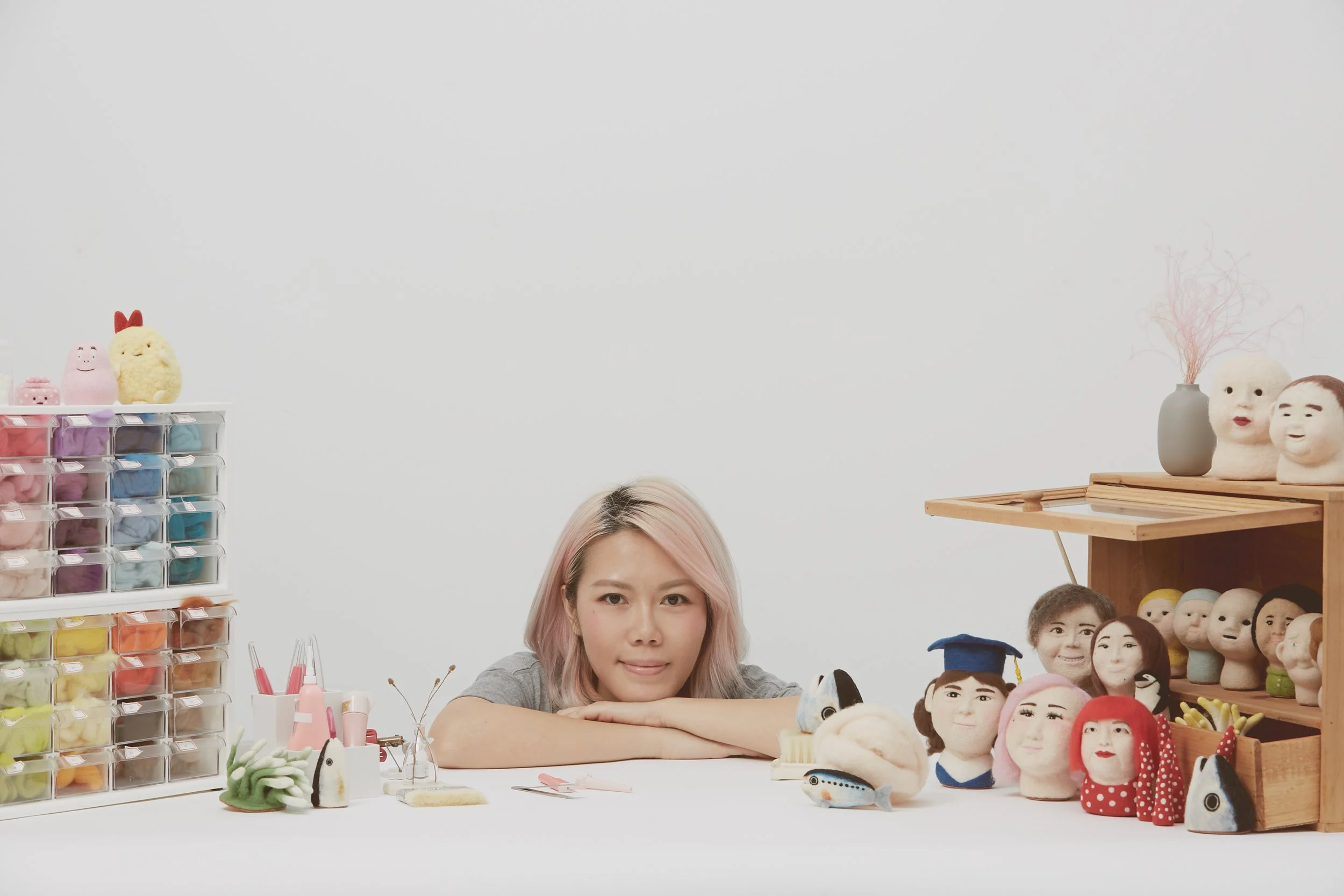 Peng Rui sees wool as the main material to create sculptures since 2012, inspired by her own natural surroundings, she embraces the simplicity of the world she inhabits and finds the beauty in things. She is always searching and learning new things, tend to fuse everyday life into her creative works. Good at interpreting characters with refreshing and minimal style to accentuate their key features.